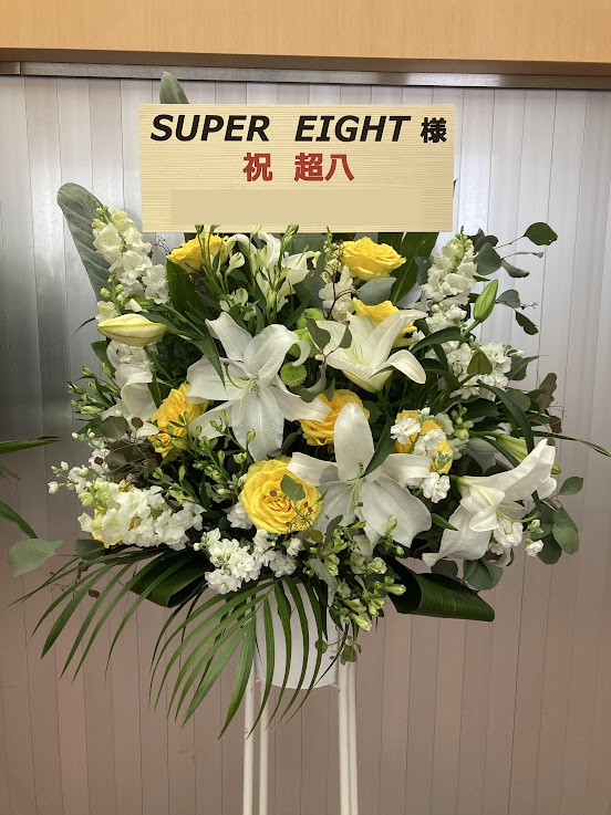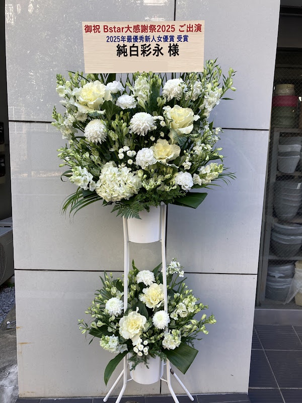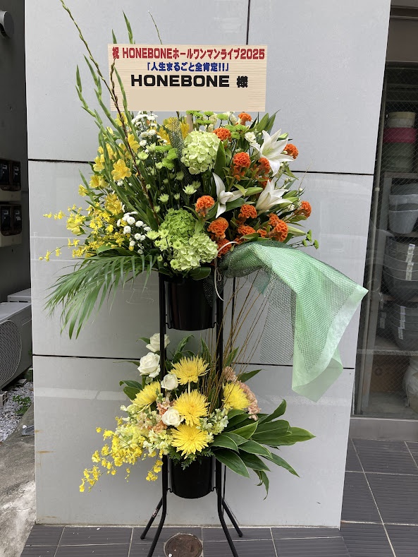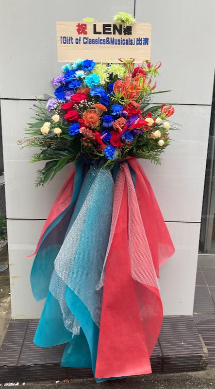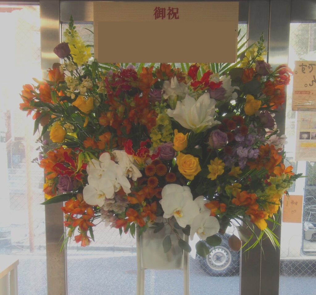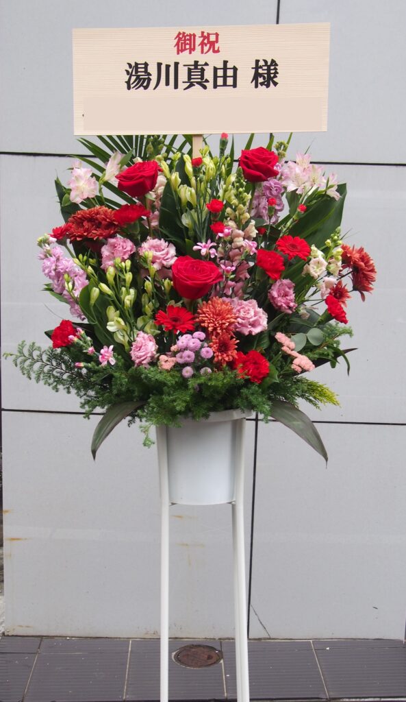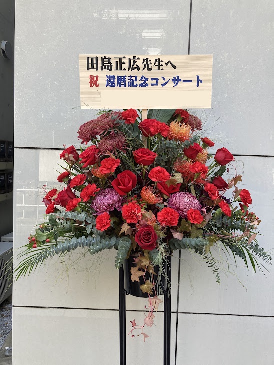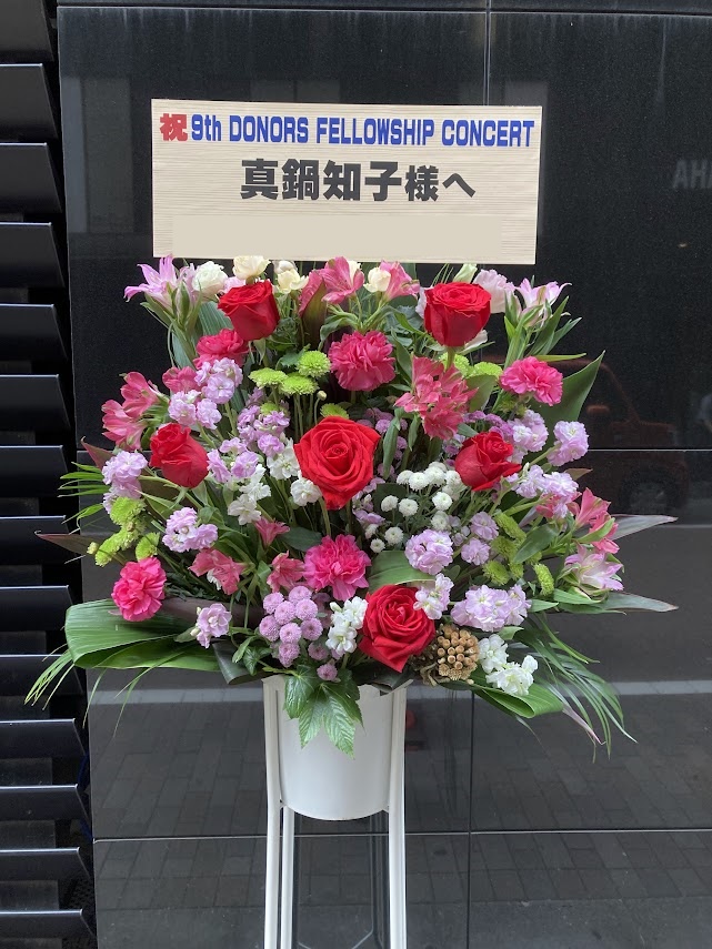 一段のスタンダードなスタンド花。銀座ヤマハホールへ。