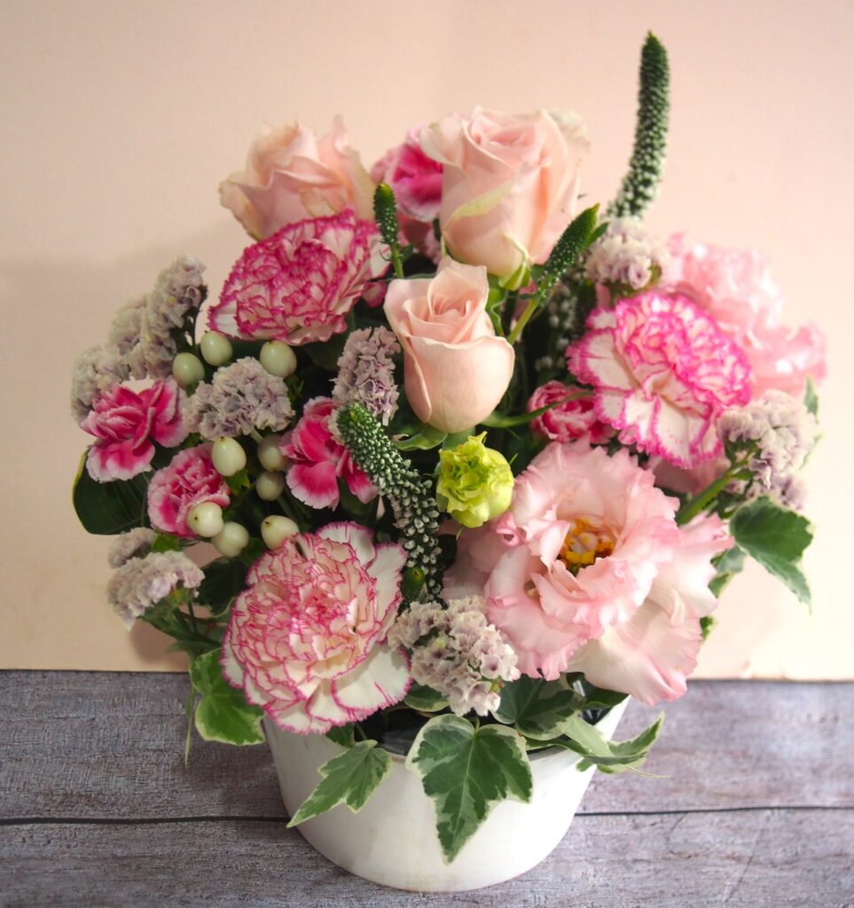 エレガント2 優しいピンク系アレンジ。お誕生日に。 まな作続けて。