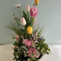 ピンクブルーお供えアレンジ。